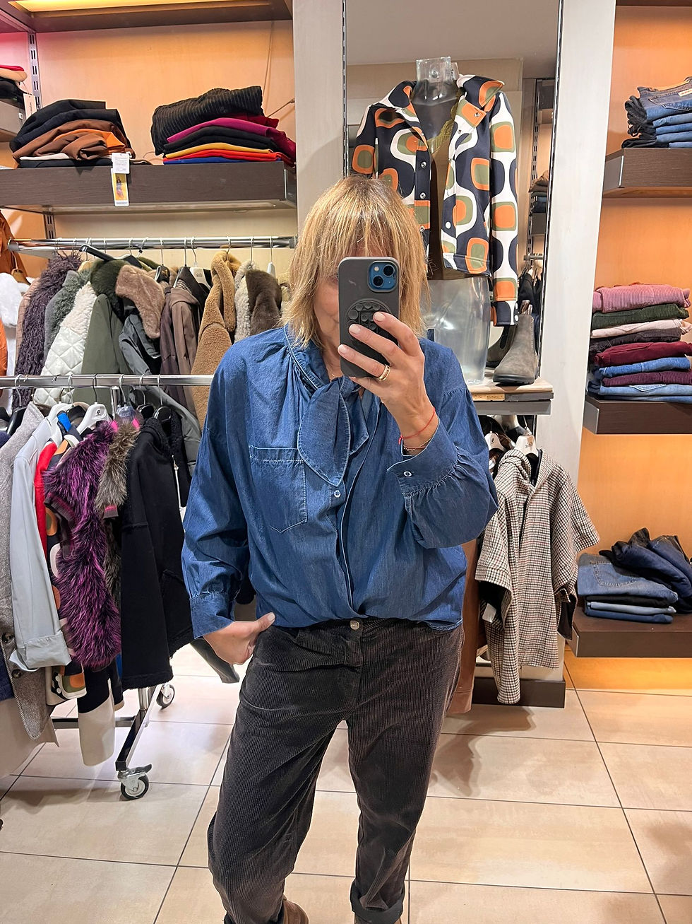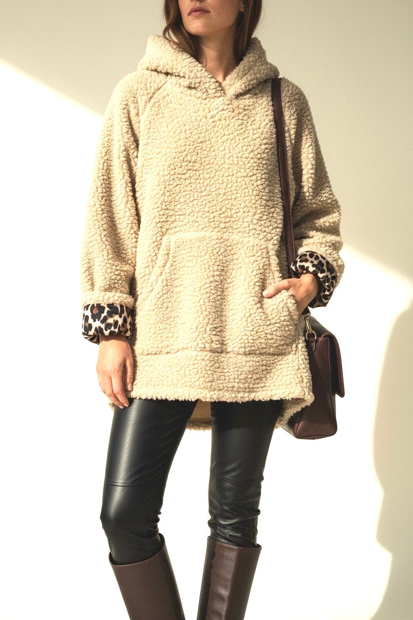 Doudoune fausse fourrure à capuche de la marque Johanna Paris avec bouton sur le côté