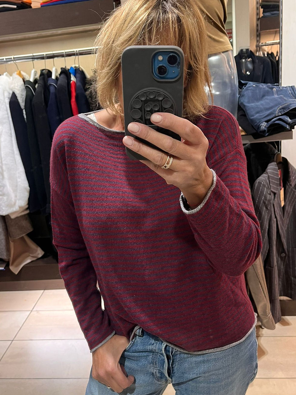 Associe le Sweater “Dolce Notte” avec un jean slim noir ou un pantalon en simili cuir pour créer un contraste moderne entre la douceur du pull et le côté rock de la matière. Complète la tenue avec une paire de bottines.